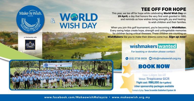 As we celebrate World Wish Day 2026, Make-A-Wish Malaysia proudly hosts our iconic annual golf tournament—Tee Off for Hope—a tradition that honors the wishes granted and the Hope, Strength & Joy shared with children battling critical illnesses.